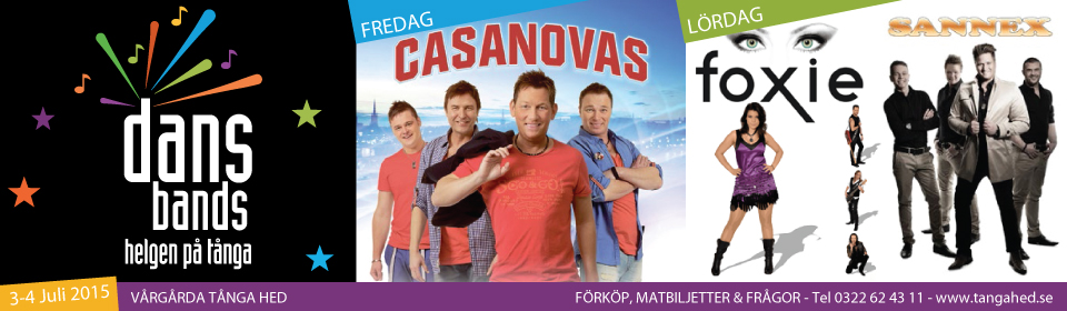 Välkomna att njuta av härlig musik och dans på Tånga hela helgen! Fredag och lördag har vi orkestrar som spelar i Tångahallen och vi hoppas och tror det blir fullt på dansgolvet, och i Puben kan man också njuta av levande musik båda kvällarna. På fredagen spelar Casanovas och på lördagen blir det dans till Sannex och Foxie. Vi har paket med logi, dansentré, måltider kontakta oss gärna för mer information eller bokning på tel:0322-624311 eller mail: info@tangahed.se